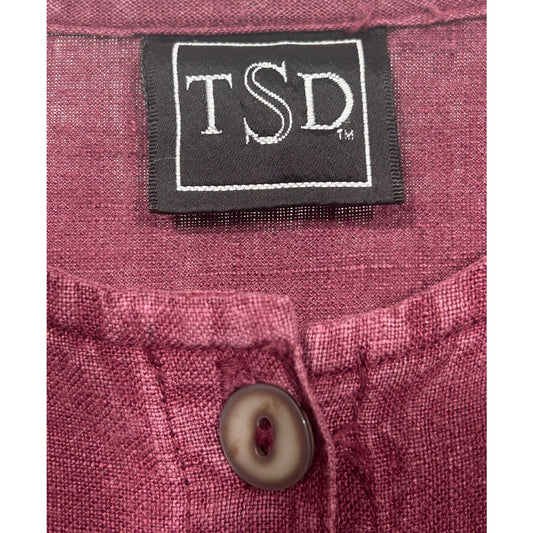 TSD 100% Hemp Button Front Blouse Burgundy Embroidered Hem Women’s M USA Made