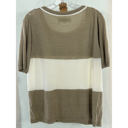 Lafayette 148 New York Color Block Hemp Knit Short Sleeve Sweater Size L