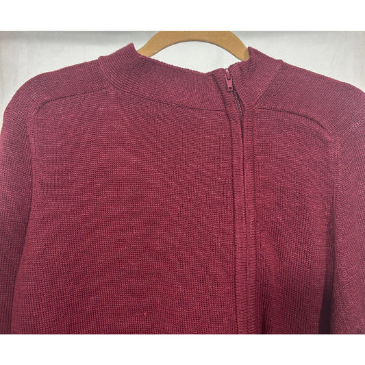 Of the Earth Hemp Wool Burgundy Asymmetrical Zip Sweater Jacket Size L
