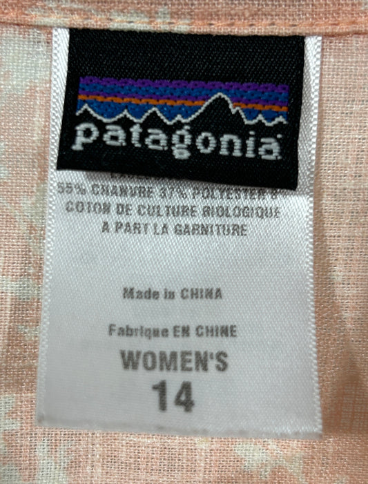 Patagonia Women's Button-Up Shirt – Organic Cotton Blend – Peach Floral Print – Size 14