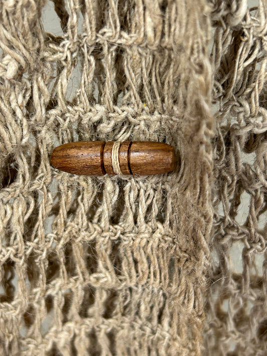 Handmade Natural Hemp Fiber Crochet Vest with Wooden Toggle Closures – Boho Festival Style Size S/M