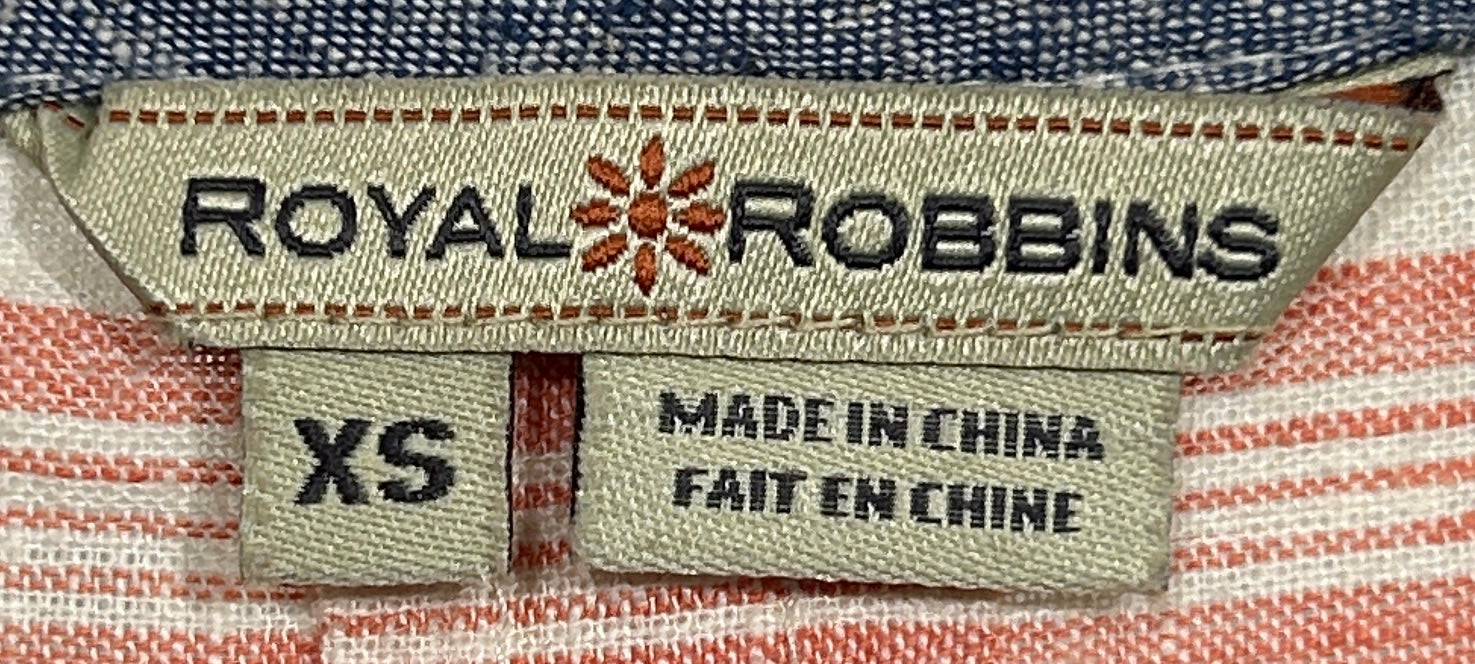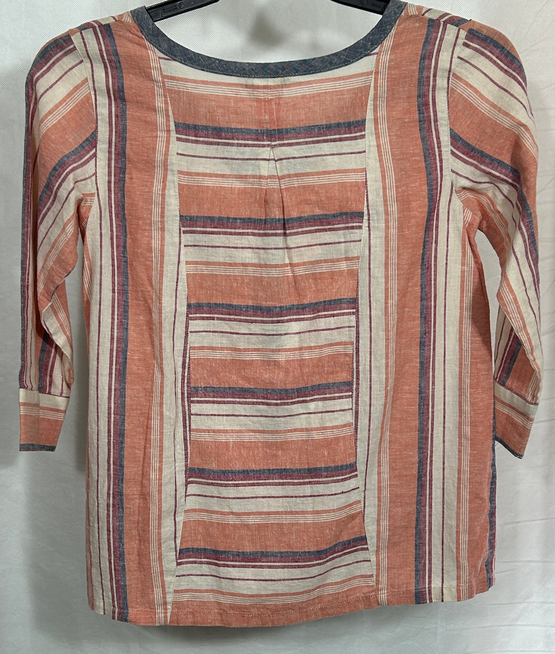 Royal Robbins XS Striped Boho Tunic Top – Hemp Blend, Earthy Tones, 3/4 Sleeve