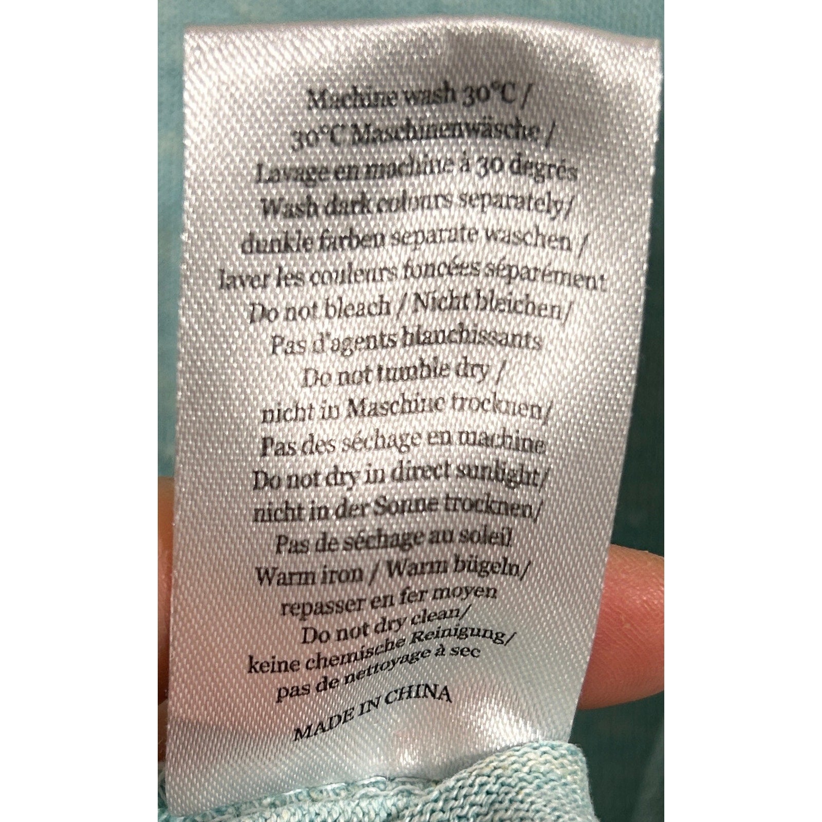 This Wrap London women’s top is crafted from a soft hemp and cotton blend in a versatile blue shade. Designed with a casual pullover style, it features 3/4 length sleeves, a slightly curved hem, and subtle lace trim detail around the neckline for a feminine touch. Made with 55% hemp and 45% cotton, it’s lightweight, breathable, and eco-friendly—perfect for everyday wear. The label reads UK 10 / US 6 (DE 36 / FR 38).
