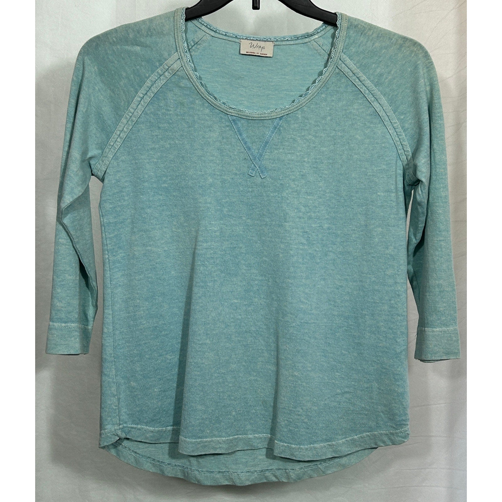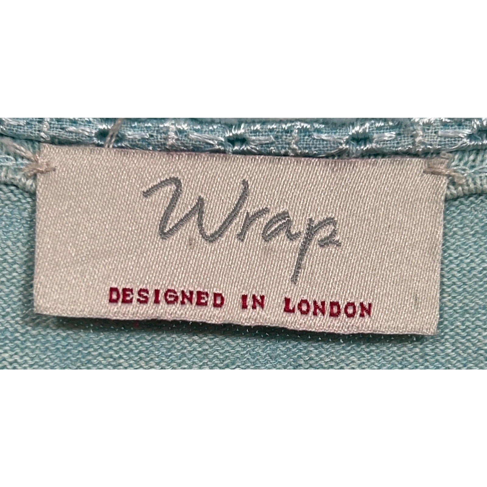 Wrap London Blue Hemp Cotton 3/4 Sleeve Top UK 10 US 6 Casual Pullover